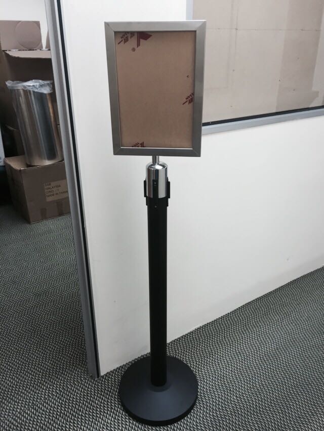 | Pole: 35mm (Dia) Base: 260mm (Dia) Max Height: 1240mm (H) Min Height: 800mm (H) The Frame: Size A4 Orientation: 360 Rotate-able Size: 240mm X 330mm |